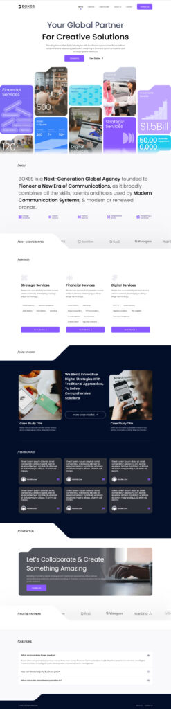 We designed and developed a fully responsive corporate website for Boxes Solutions, a tech-forward B2B company specializing in enterprise software and cloud-based services. The website was built with a focus on performance, user experience, and a clean, modern design that reflects the company’s professionalism and innovation.